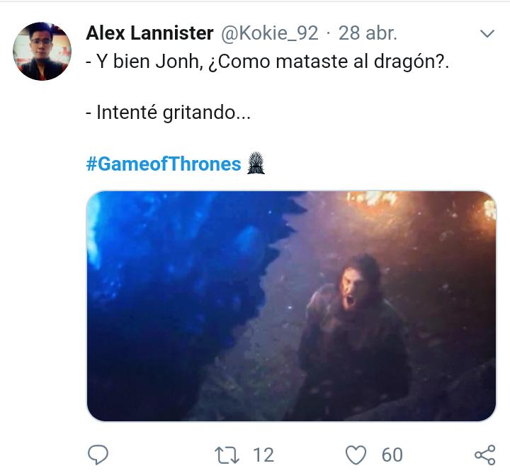 Lo otro es que podrian haber quedado bknes las escenas cliches como bran controlando a ghost, la pelea de jon con NK, pelea epica entre el drogon y viserion, jaime y brianne peleando espalda a espalda con los caminantes, etc