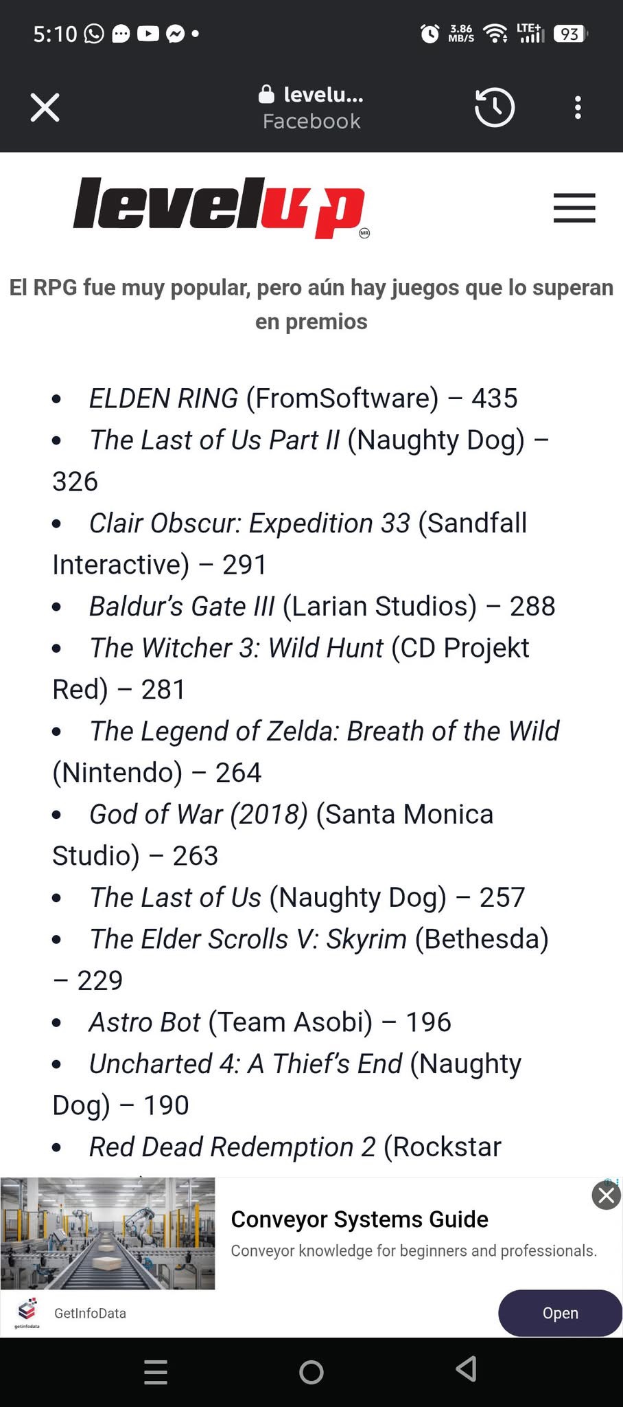 Según Gemini en modo razonamiento, señala que probablemente sobrepase las 300 a 320 premios, puede alcanzar el TLOU2, pero no pasará Elden Ring.
