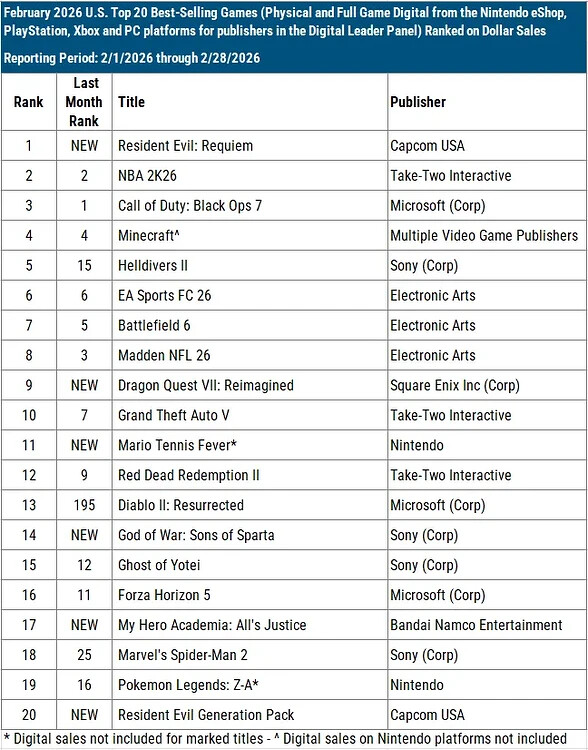 En particular, nintendo no da datos de sus ventaa digitales a esas listas, por eso los numeros de nintendo siempre se ven menores, hasta que sacan su informe del trimeste.