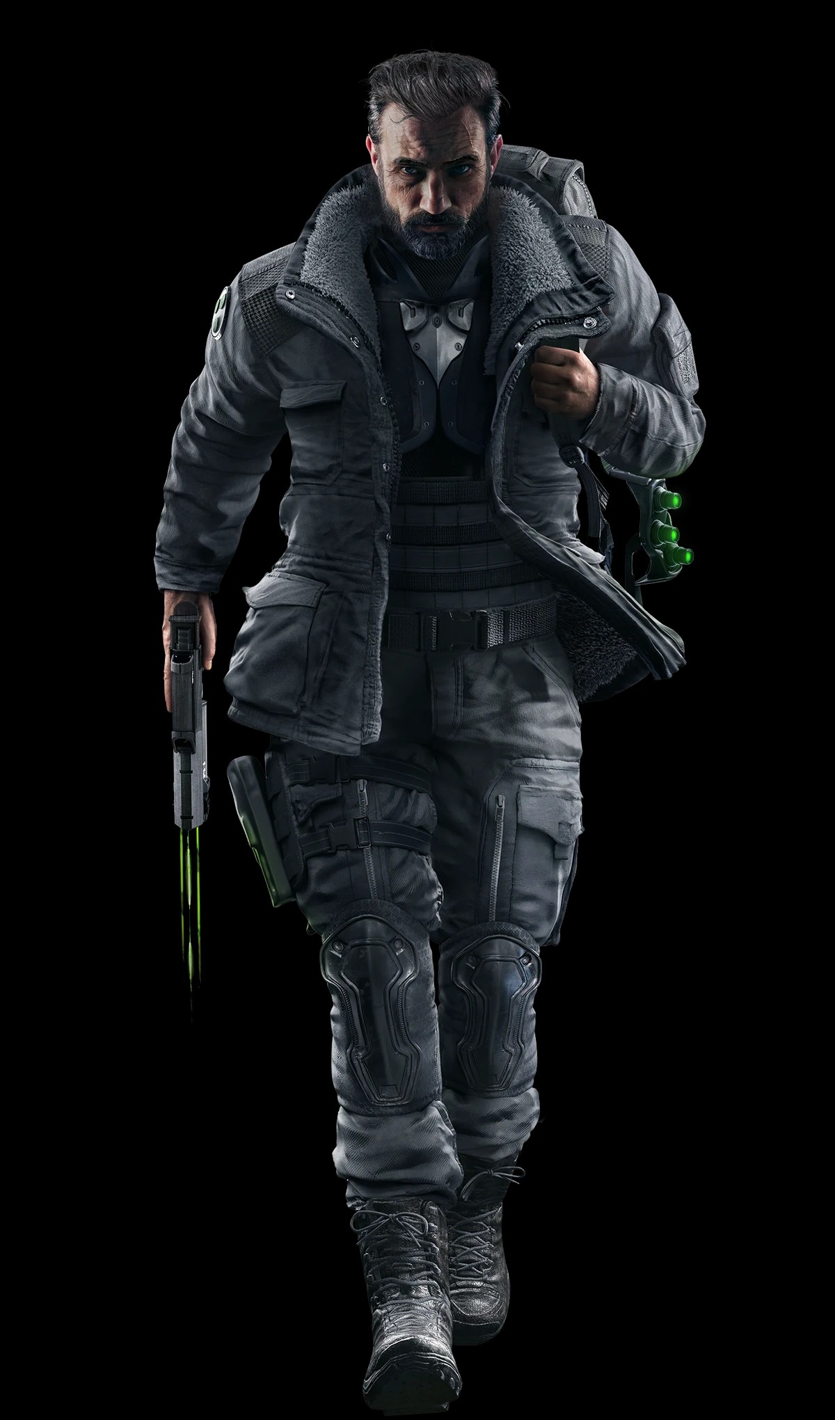 La voz en latino la hace René García (Vegeta) y se supone que más adelante sale Sam Fisher como nuevo operador.