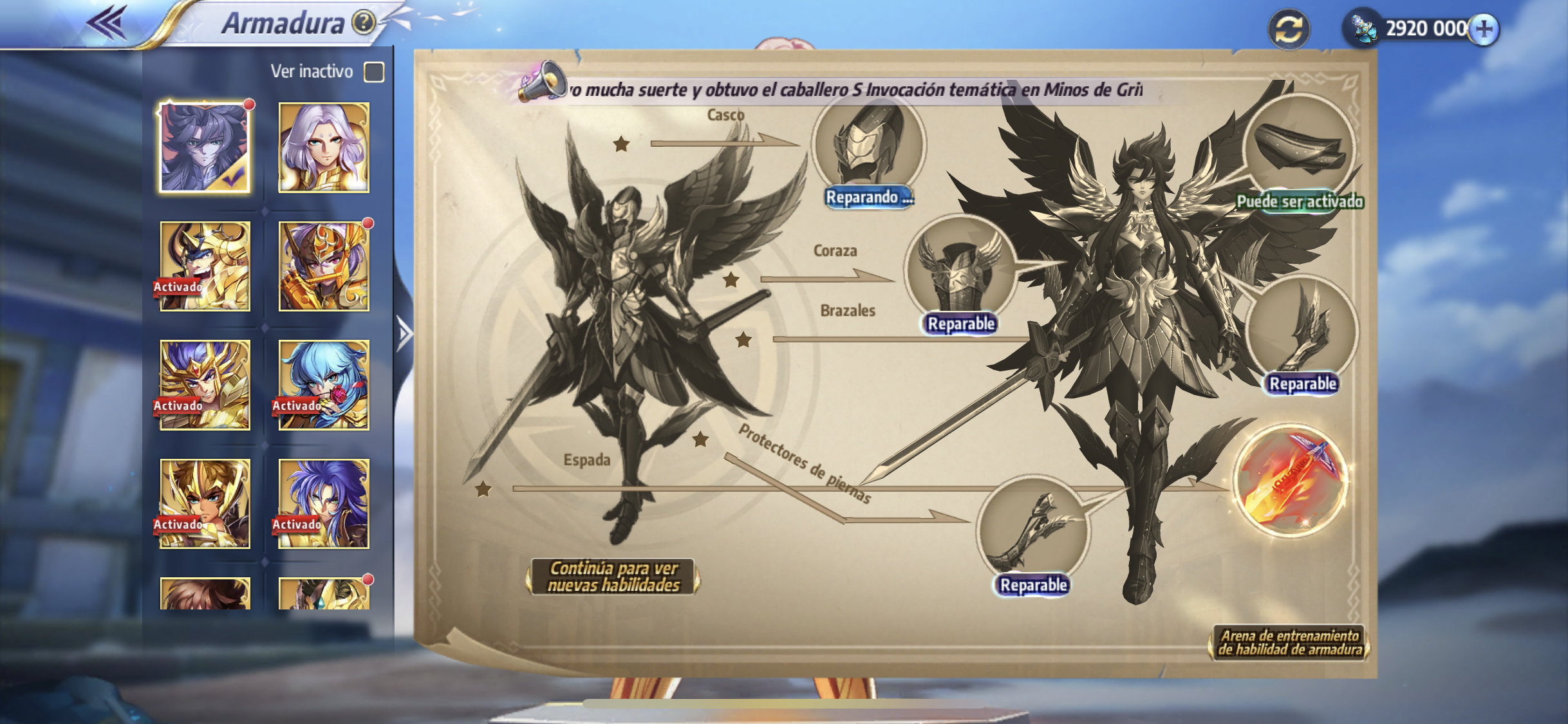 Uta voy a revisar, tengo que pensar en un team alternativo para cuando me quedo sin los dioses. El papajuan no le he subido nada de nada, asi que en verdad no tengo tantas alternativas