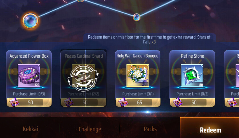 luego van a la pestaña principal y le dan al evento, vuelven a redeem y canjean los fragmentos de cardinale 2 veces