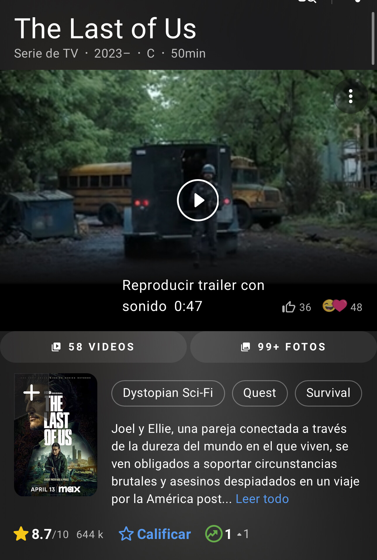 Puta a mi me gusto harto TLOU 2 (puede que incluso mas que el 1) pero la serie no se…como dije se siente un argumento demasiado basico, a ratos mas simple que the walking dead (que ya es decir mucho) y hasta cringe dan algunas situaciones que se hacen inverosímiles en un mundo que busca transmitir precisamente lo contrario. El juego muy bueno, la serie regulera -fome